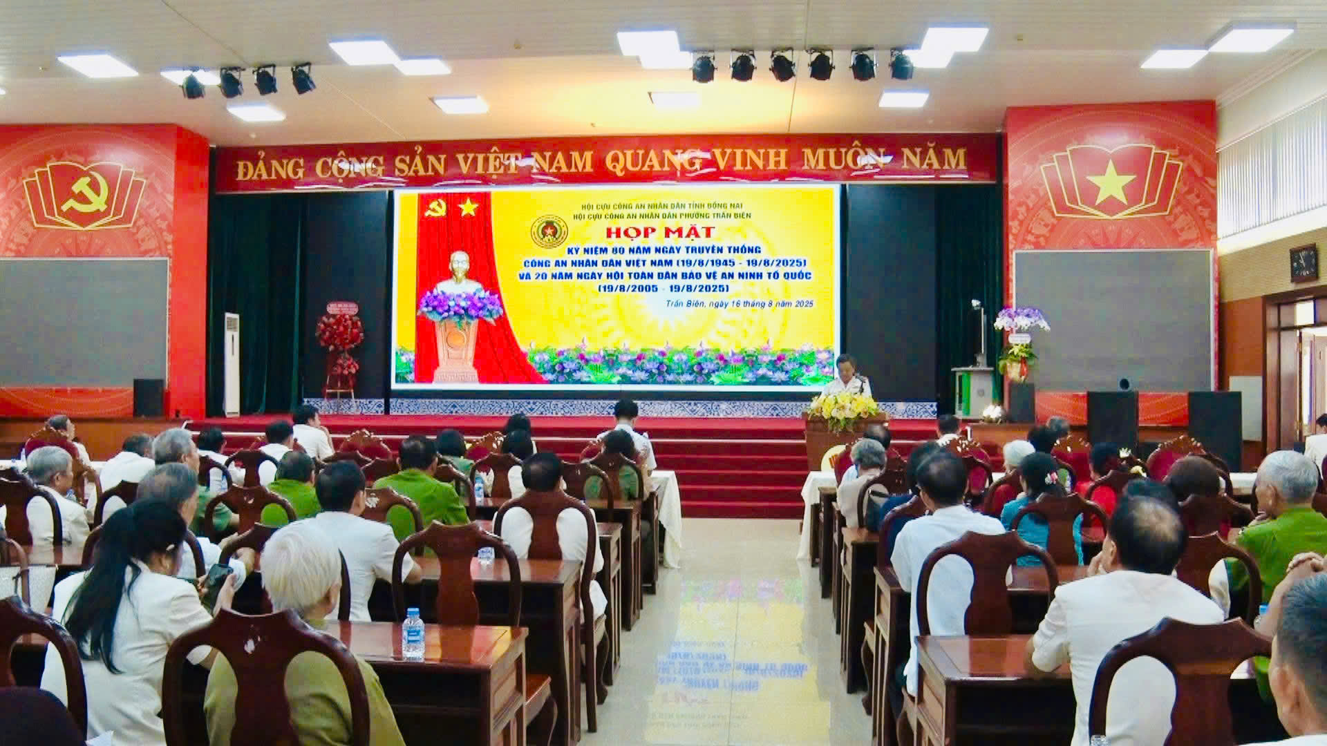 Sáng 16-8, Hội Cựu Công an nhân dân phường Trấn Biên tổ chức Họp mặt kỷ niệm 80 năm Ngày truyền thống Công an nhân dân Việt Nam (19/8/1945 – 19/8/2025) và 20 năm Ngày hội Toàn dân bảo vệ an ninh Tổ quốc (19/8/2005 – 19/8/2025).