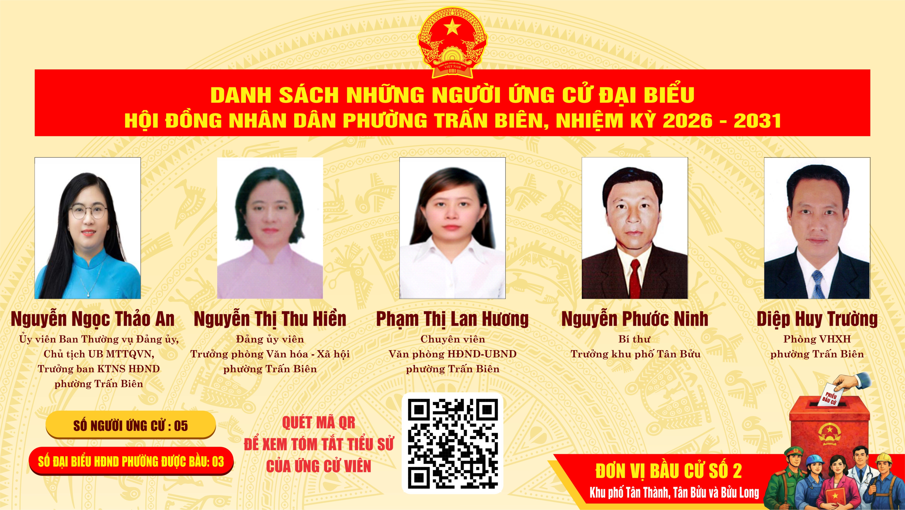 Danh sách những người ứng cử hội đồng nhân dân phường trấn biên, nhiệm kỳ 2026 - 2031 - Đơn vị bầu cử số 02