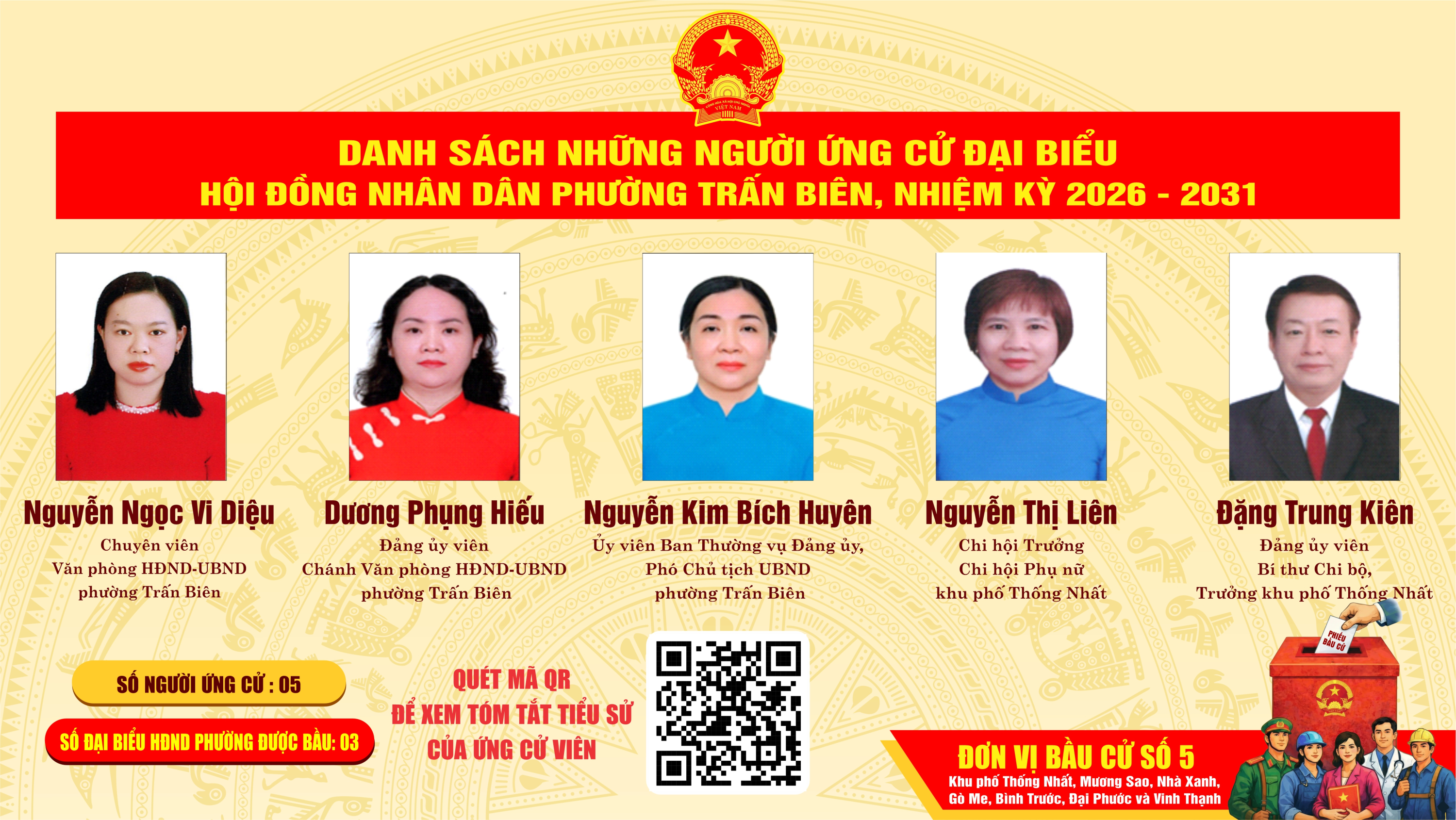 Danh sách những người ứng cử hội đồng nhân dân phường trấn biên, nhiệm kỳ 2026 - 2031 - Đơn vị bầu cử số 05