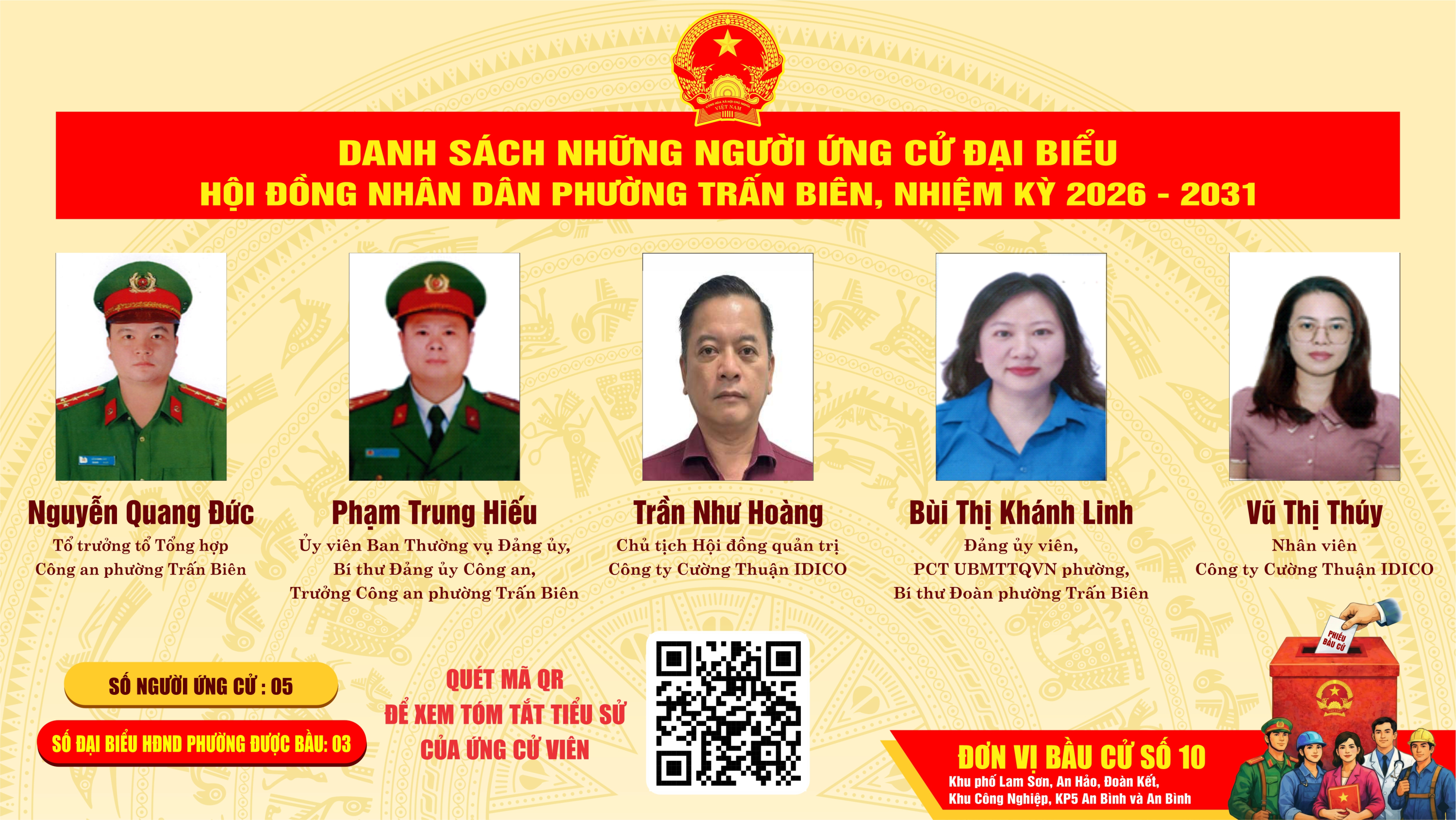Danh sách những người ứng cử hội đồng nhân dân phường trấn biên, nhiệm kỳ 2026 - 2031 - Đơn vị bầu cử số 10