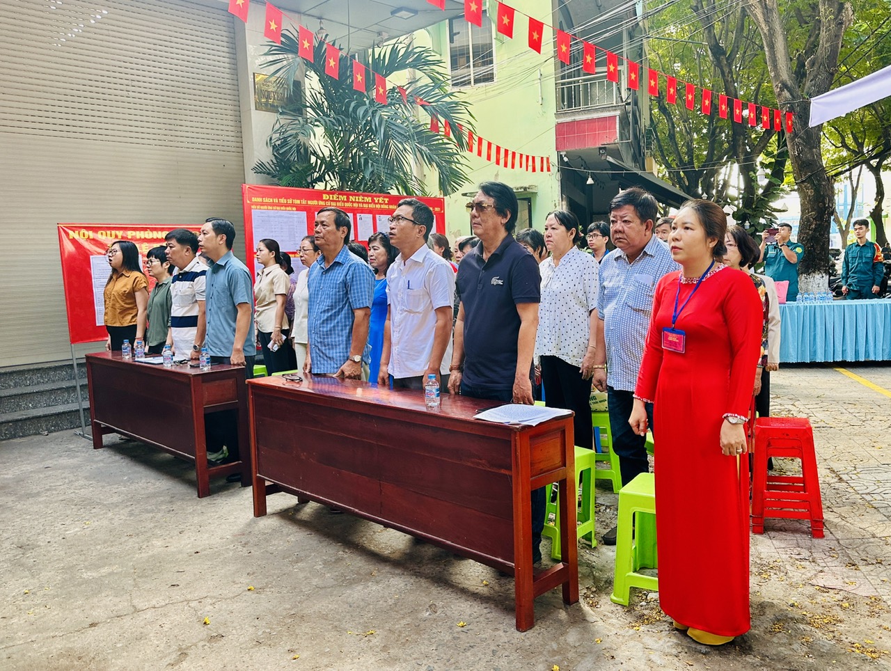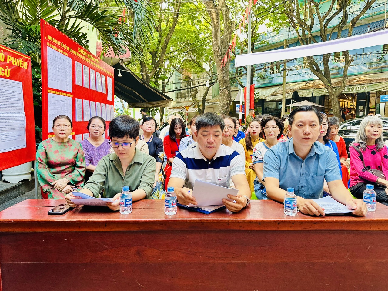 Tại khu vực bỏ phiếu số 35, đơn vị bầu cử số 7 (Nhà văn hóa Sông Phố), tham dự buổi diễn tập có các đồng chí: Nguyễn Cao Cường, Chánh Văn phòng Đảng ủy phường; Bùi Khánh Linh, Phó Chủ tịch Ủy ban MTTQ Việt Nam phường, Bí thư Đoàn thanh niên phường; Phạm Ngọc Hà, Bí thư Chi bộ, Trưởng Khu phố Sông Phố, Tổ trưởng Tổ bầu cử số 35; Võ Thành Lũy, Phó Bí thư Chi bộ, Trưởng Ban Công tác Mặt trận Khu phố Sông Phố và các cử tri.