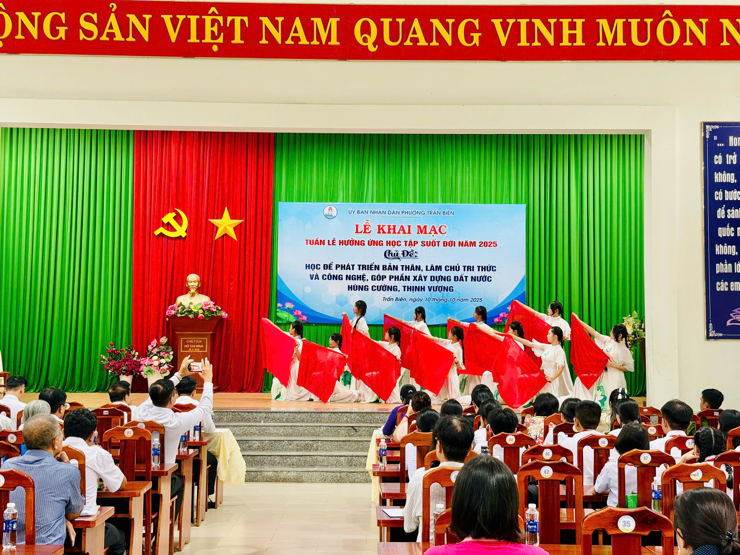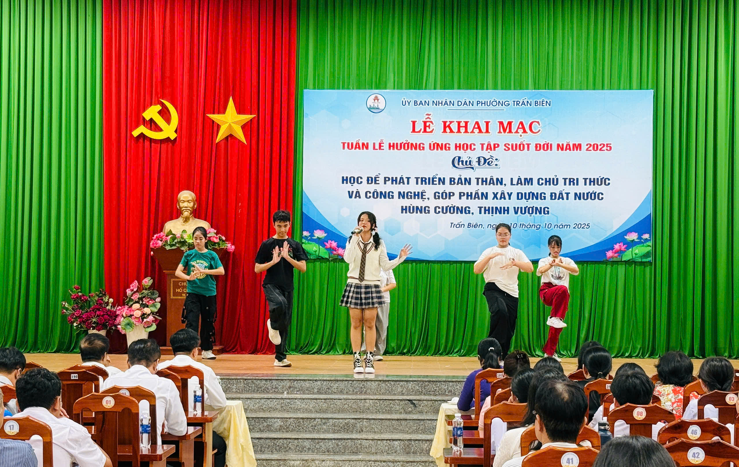 Ngày 10/10/2025 tại trường THCS Nguyễn Bỉnh Khiêm, UBND phường Trấn Biên đã tổ chức Tuần lễ hưởng ứng học tập suốt đời năm 2025 với chủ đề: “Học để phát triển bản thân, làm chủ tri thức và công nghệ, góp phần xây dựng đất nước hùng cường, thịnh vượng.” Buổi lễ đã thu hút sự tham gia của hơn 200 cán bộ, giáo viên, học sinh trên địa bàn.