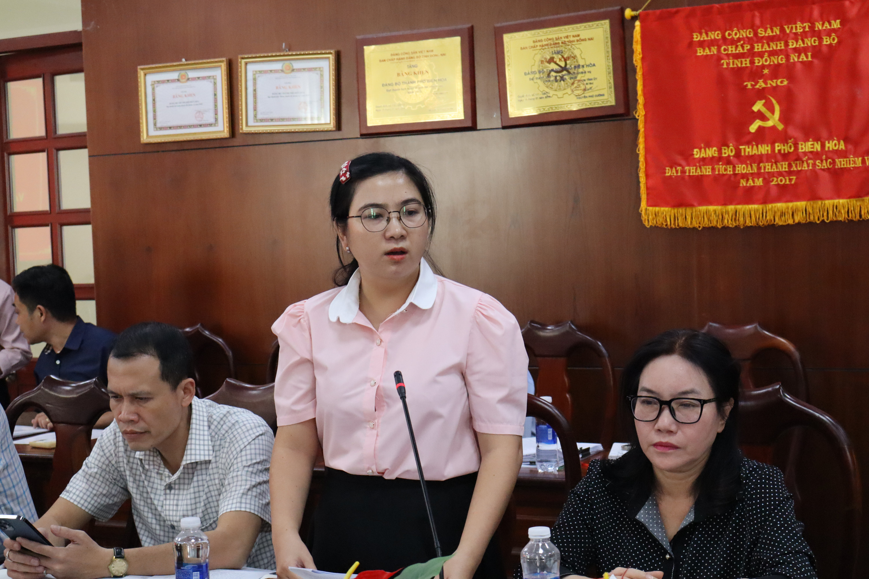 Phát biểu chỉ đạo tại buổi làm việc, Phó Chủ tịch Ủy ban MTTQ Việt Nam tỉnh Đồng Nai Lưu Thị Hà ghi nhận những kết quả trong công tác bầu cử của phường Trấn Biên trong thời gian qua.