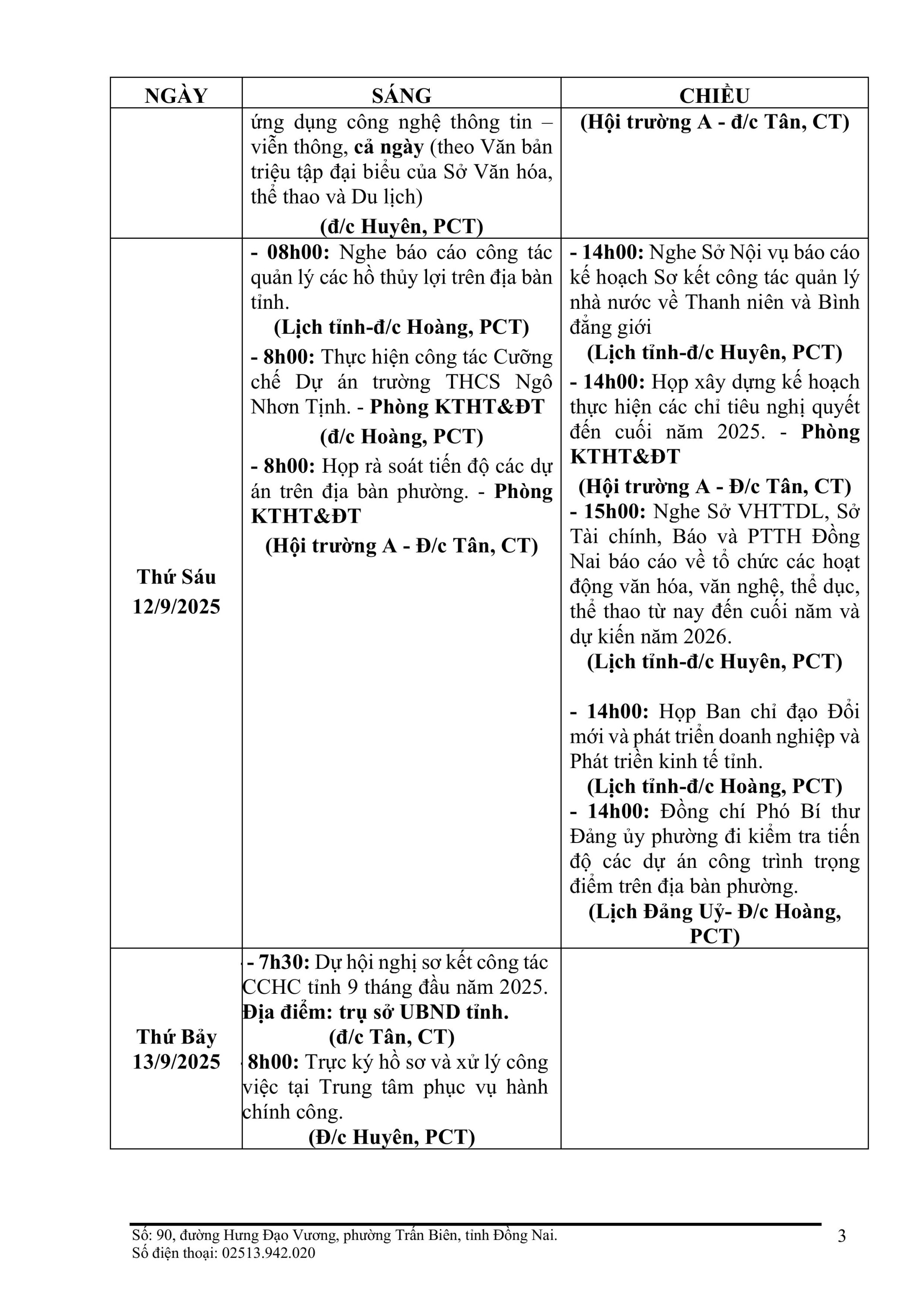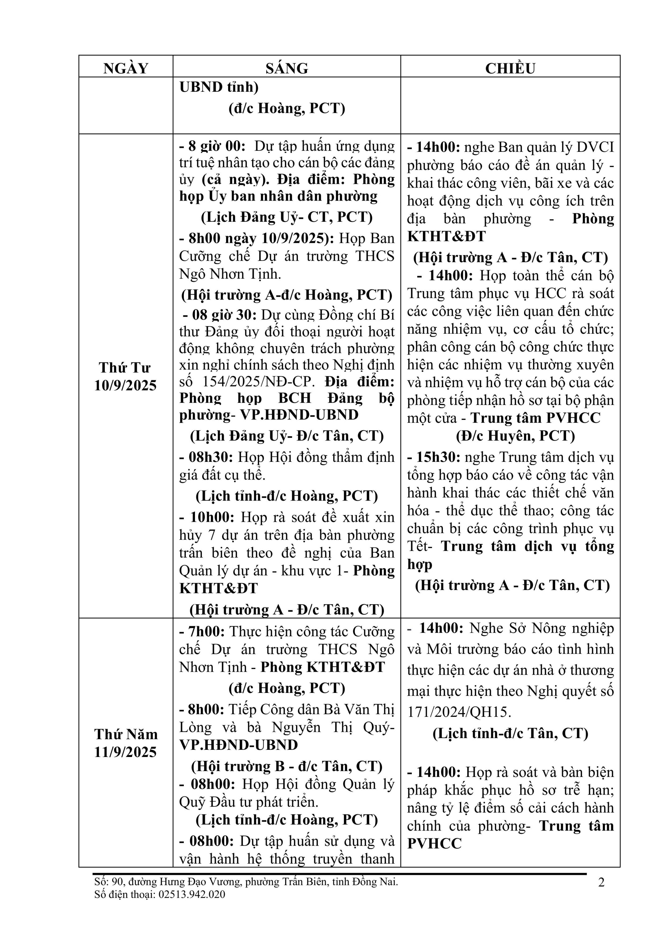 Lịch làm việc của UBND phường Trấn Biên - Tuần 37 (Từ ngày 08/9/2025 đến ngày 14/9/2025)
