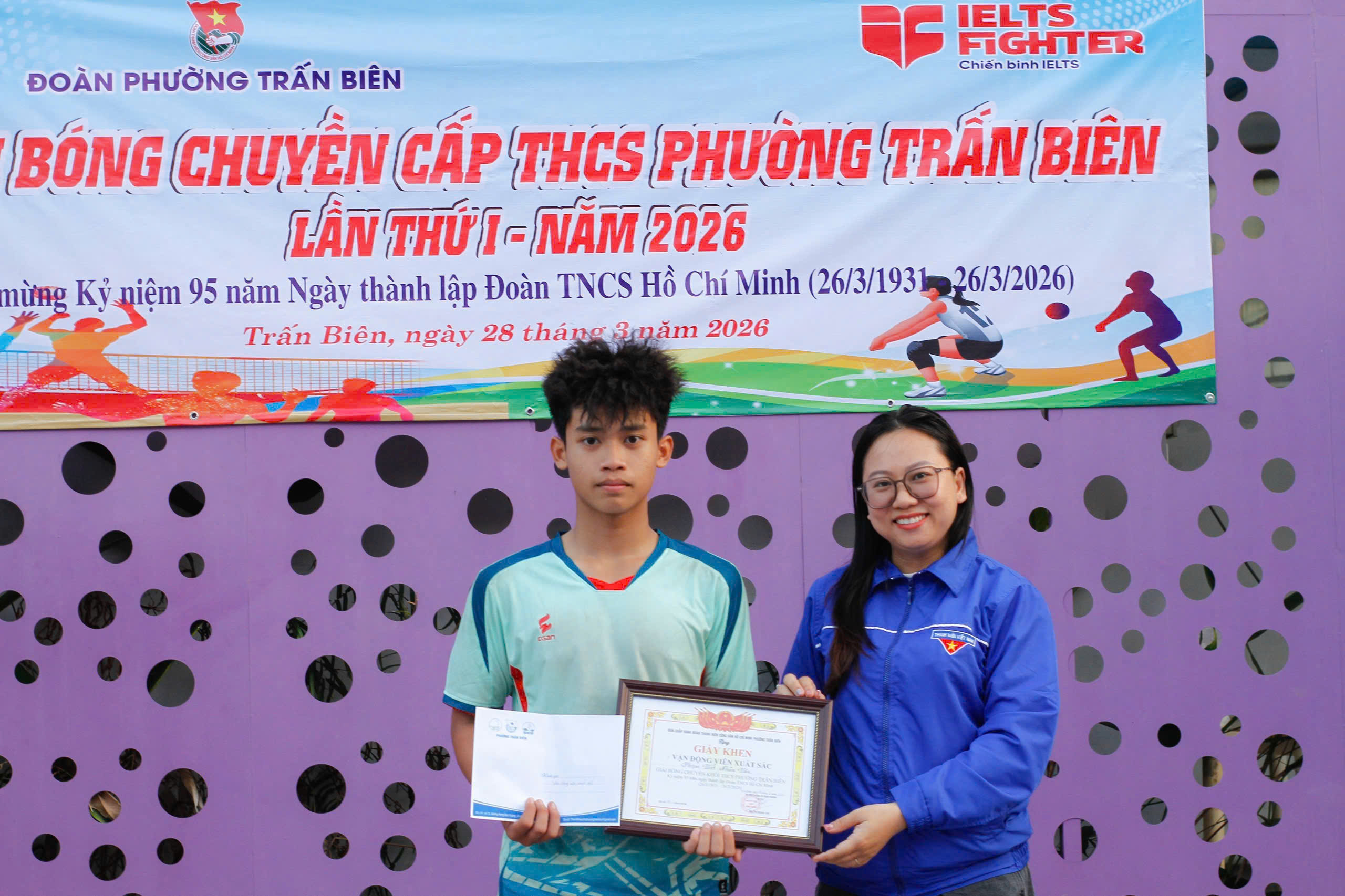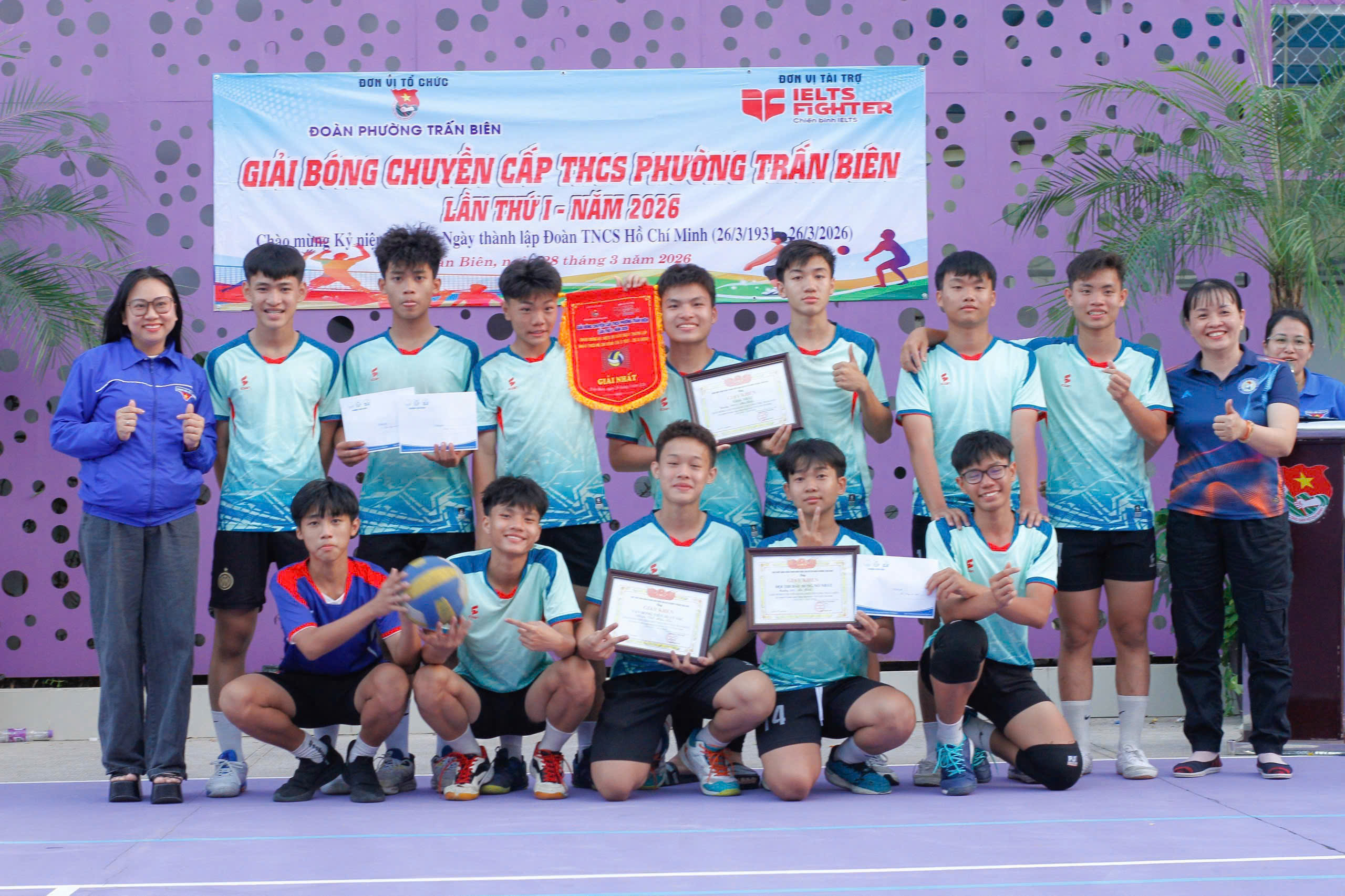 Thiết thực chào mừng 95 năm Đoàn TNCS Hồ Chí Minh (26/3/1931 – 26/3/2026) và kỷ niệm 91 năm Dân quân tự vệ Việt Nam (28/3/1935 – 28/3/2026), Đoàn phường Trấn Biên đã tổ chức Giải bóng chuyền khối Trung học cơ sở năm 2026, thu hút đông đảo học sinh tham gia, tạo sân chơi lành mạnh và lan tỏa phong trào rèn luyện thể chất trong thanh thiếu nhi.