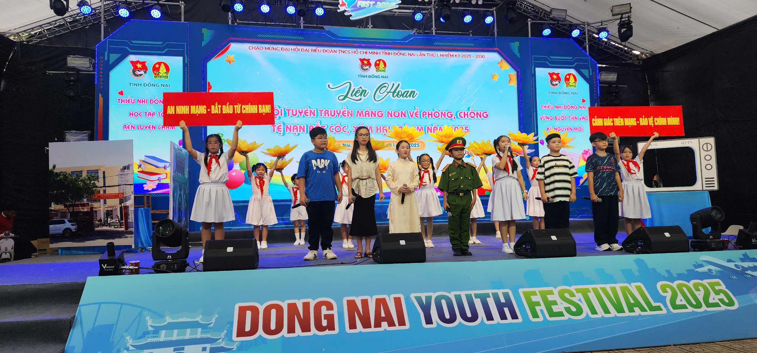Ở phần thi Măng non tuyên truyền, thông qua thuyết trình và tiểu phẩm, các đội truyền tải thông điệp về phòng, chống tệ nạn bắt cóc, xâm hại, bạo lực và tai nạn thương tích trẻ em. Kết thúc liên hoan, đội tuyên truyền măng non phường Trấn Biên (Liên đội trường TH Quang Vinh) đã xuất sắc vượt qua nhiều đội thi để giành Giải Nhất toàn đoàn.