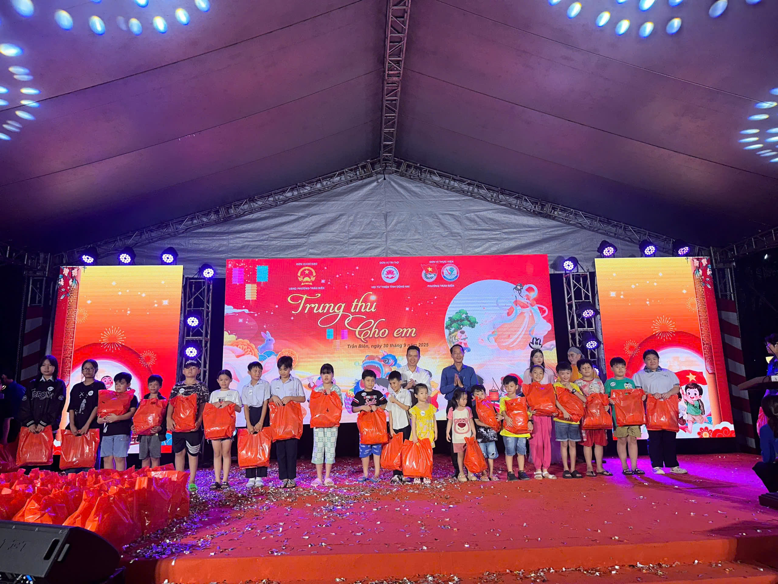 Ngoài việc tổ chức các gian hàng trò chơi Ban Tổ chức còn trao tặng 300 phần quà Trung thu gồm bánh trung thu, bánh kẹo, lồng đèn, sữa... cho các em thiếu nhi có hoàn cảnh khó khăn trên địa bàn phường, góp phần mang đến niềm vui trọn vẹn, sẻ chia hơi ấm yêu thương trong mùa trăng rằm.