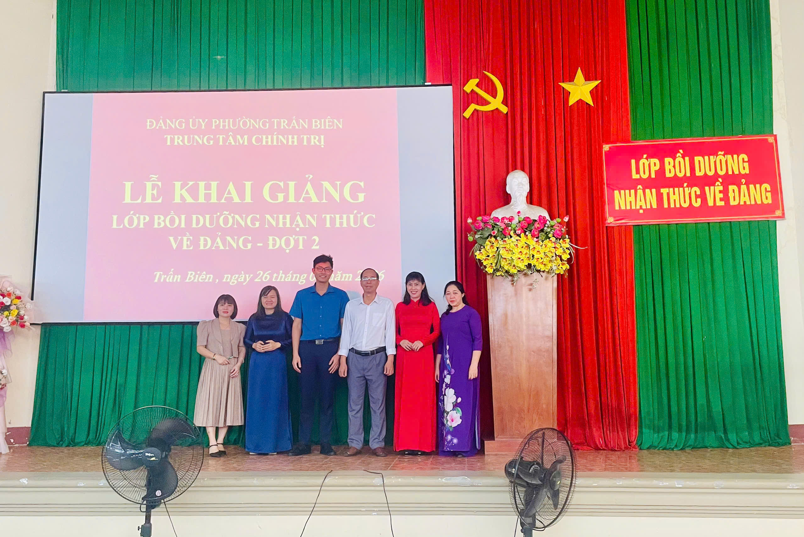 Phát biểu tại lễ khai giảng, đại diện lãnh đạo Trung tâm Chính trị Trấn Biên đã thông qua quyết định thành lập lớp học đồng thời quán triệt một số nội dung, quy định thời gian vào lớp đến với các học viên. Từ đầu năm 2026 đến nay, Trung tâm Chính trị Trấn Biên đã tổ chức 3 lớp bồi dưỡng nhận thức về Đảng cho gần 800 quần chúng ưu tú chi, đảng bộ các đơn vị, doanh nghiệp trực thuộc Đảng ủy phường theo Quy chế số 02-QC/TU ngày 01/10/2025 của Ban Thường vụ Tỉnh ủy về Quy chế phối hợp giữa đảng ủy xã, phường trong công tác bồi dưỡng lý luận chính trị, chuyên môn nghiệp vụ tại trung tâm chính trị xã, phường.